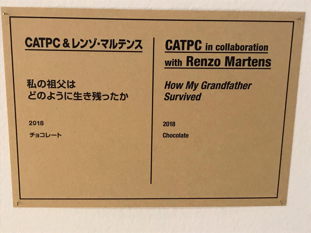 森美術館にて2018年10月6日〜2019年1月20日まで開催の展覧会、「カタストロフと美術のちから展」での展示作品「私の祖父はどのように生き残ったか/CATPC&レンゾ・マルテンス」にて、チョコレート型の製作を弊社がお手伝いしました。